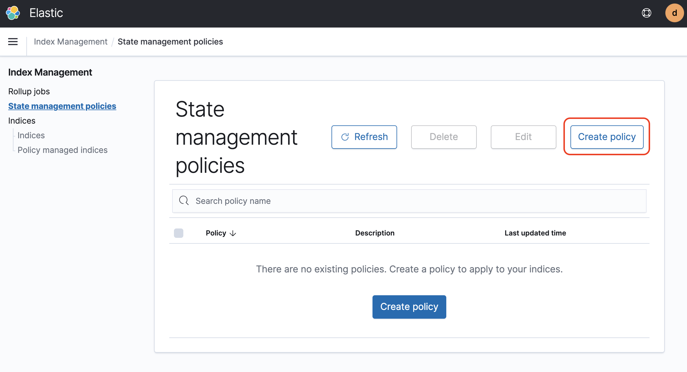'State management policies'메뉴에서 'Create policy'로 정책을 생성합니다.
