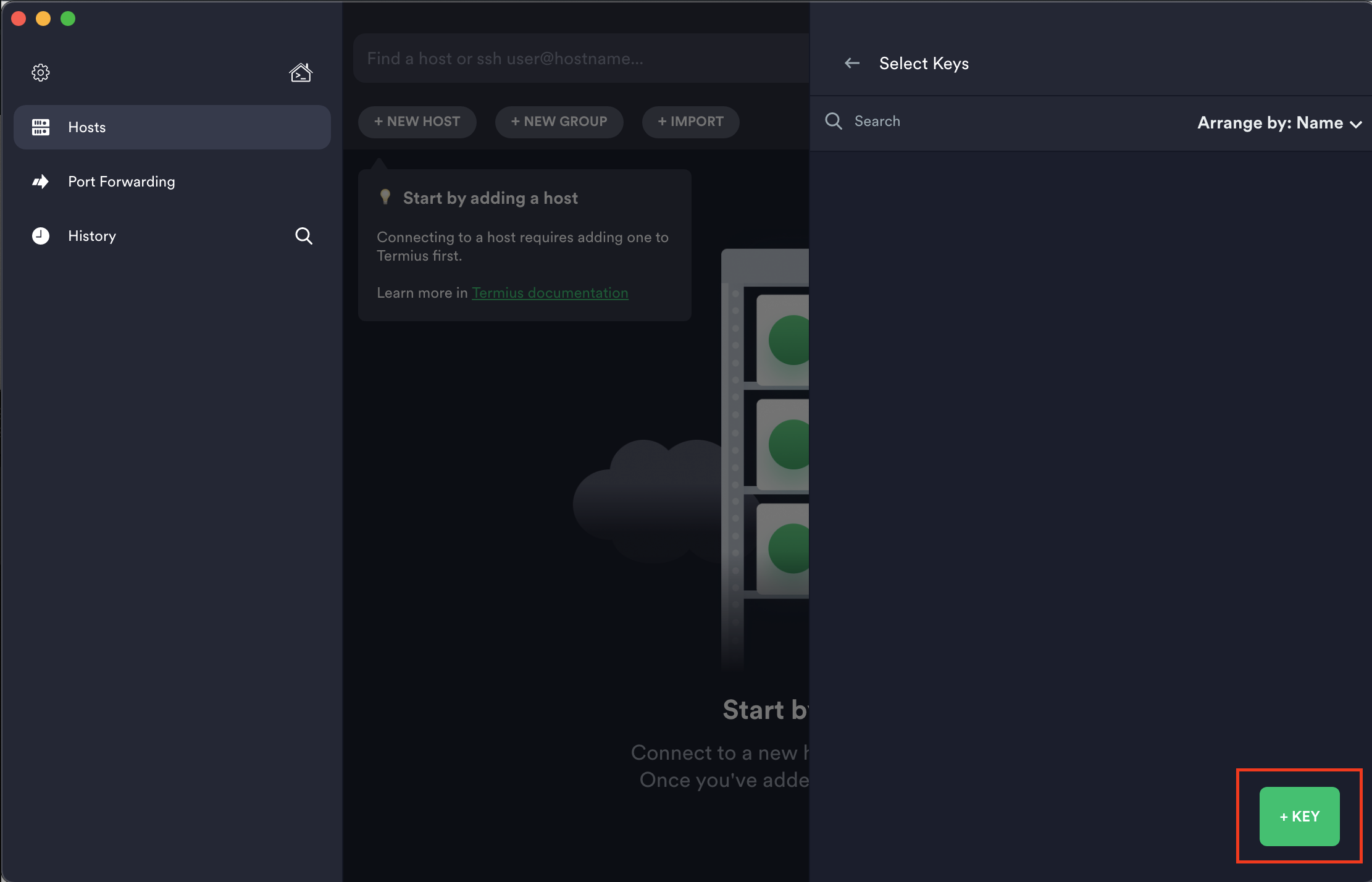 'Keys'를 클릭해서 EC2 생성 시 다운로드한 키페어를 등록합니다.